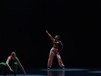Hubbard Street Dancers Jacqueline Burnett and Simone Stevens in B/OLERO by Ohad Naharin.